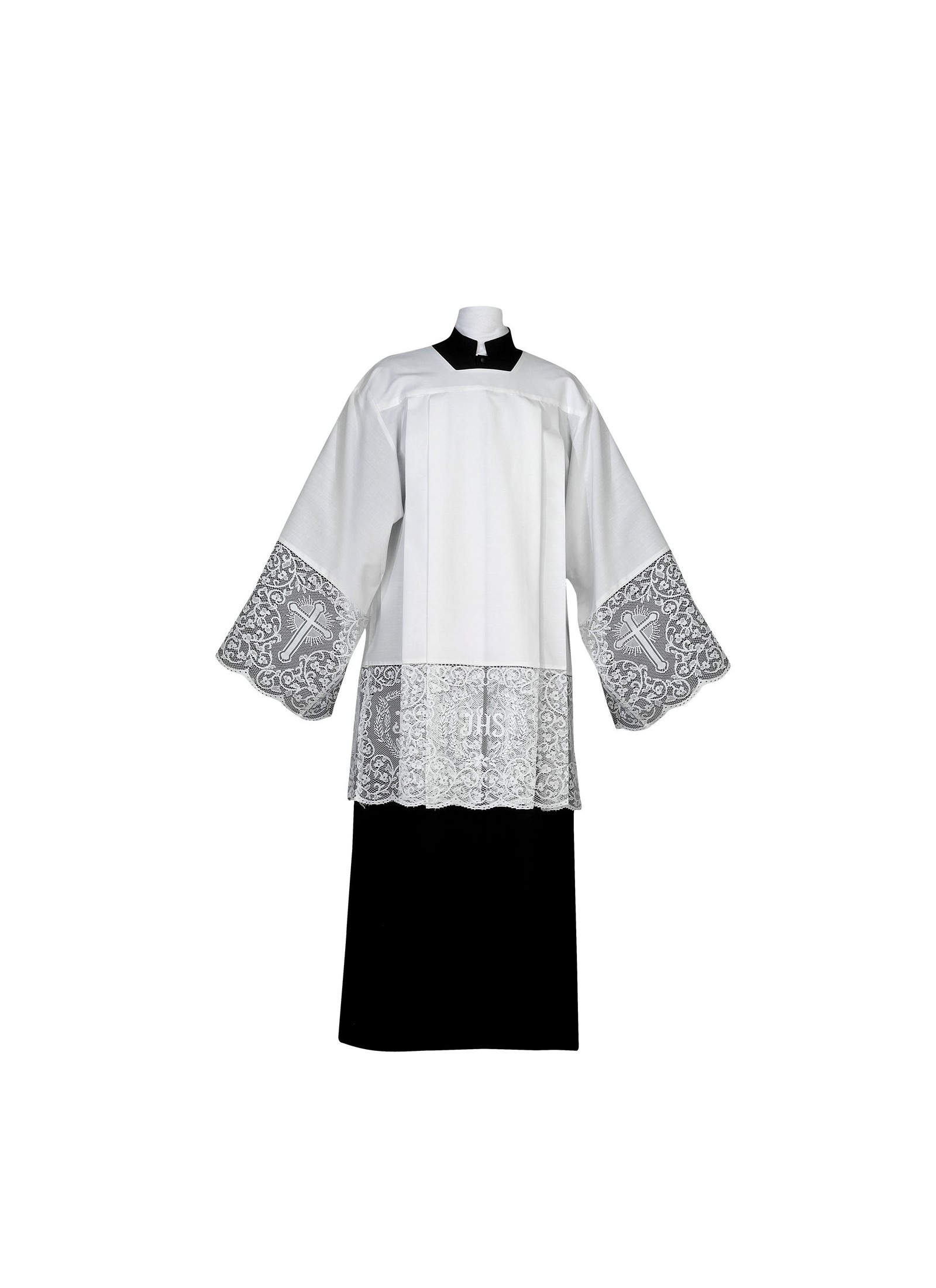 119-0662 - Ludgerus: Gewebe in 60% Polyester und 40% Viskose, mit Spitzenbesatz (75% Polyester, 25% Baumwolle).
