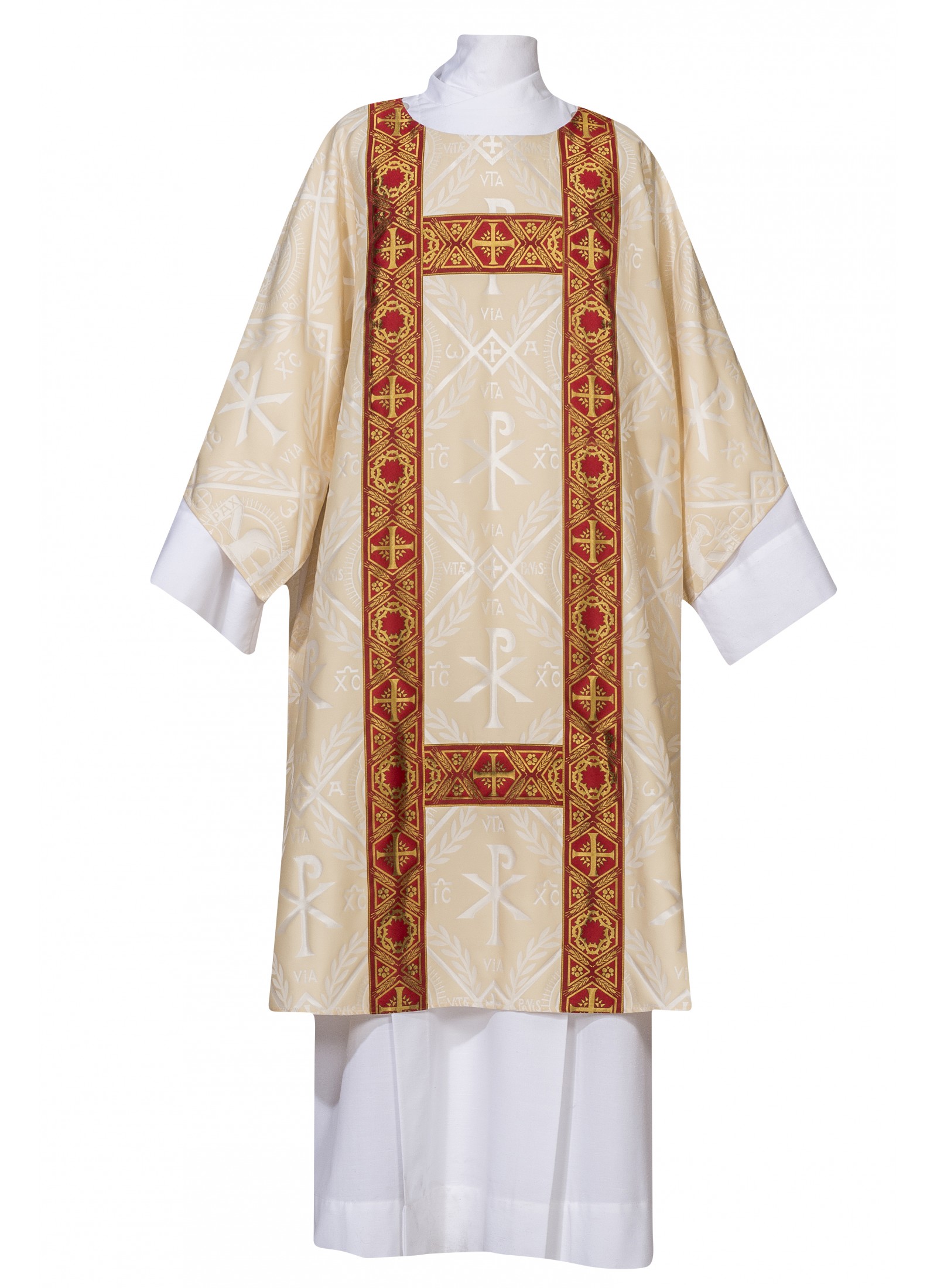 Diese Kollektion ist in Chi-Rho Damast mit Galone angefertigt.