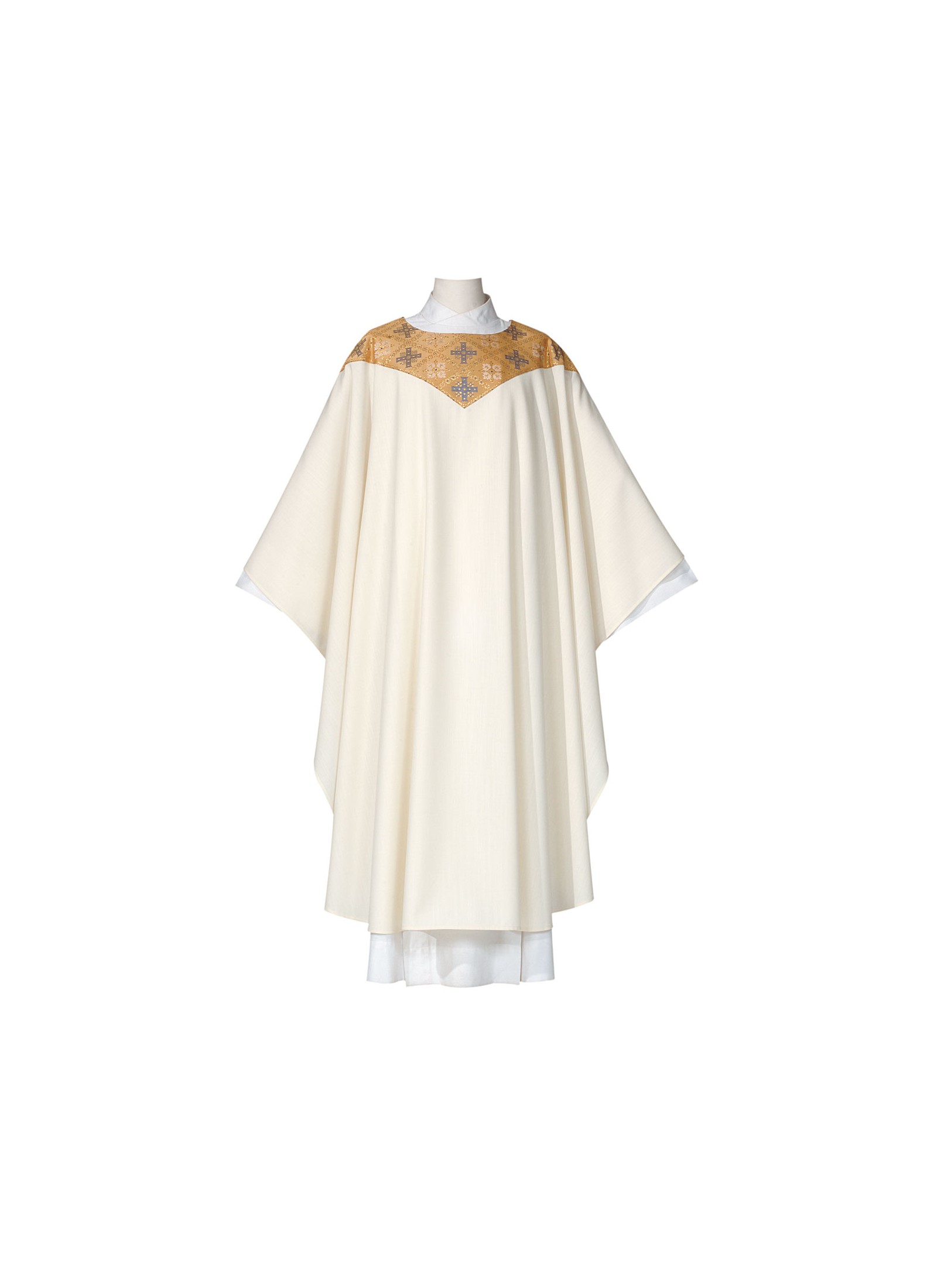 Diese Gewänder werden in Stoff Benedictus (45% Wolle, 55% Polyester) angefertigt, mit Akzent in Canterbury-Brokat.