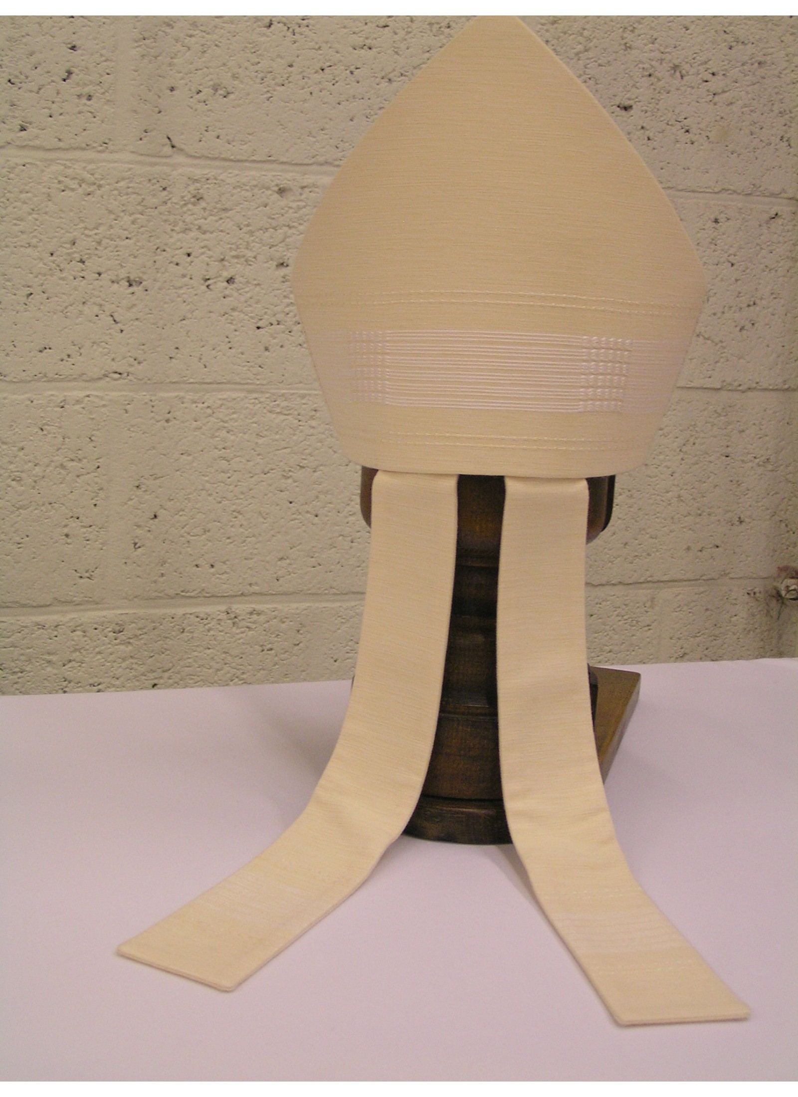 Gewebte Mitra in 70% Wolle, 25% Polyester, 5% Seide.