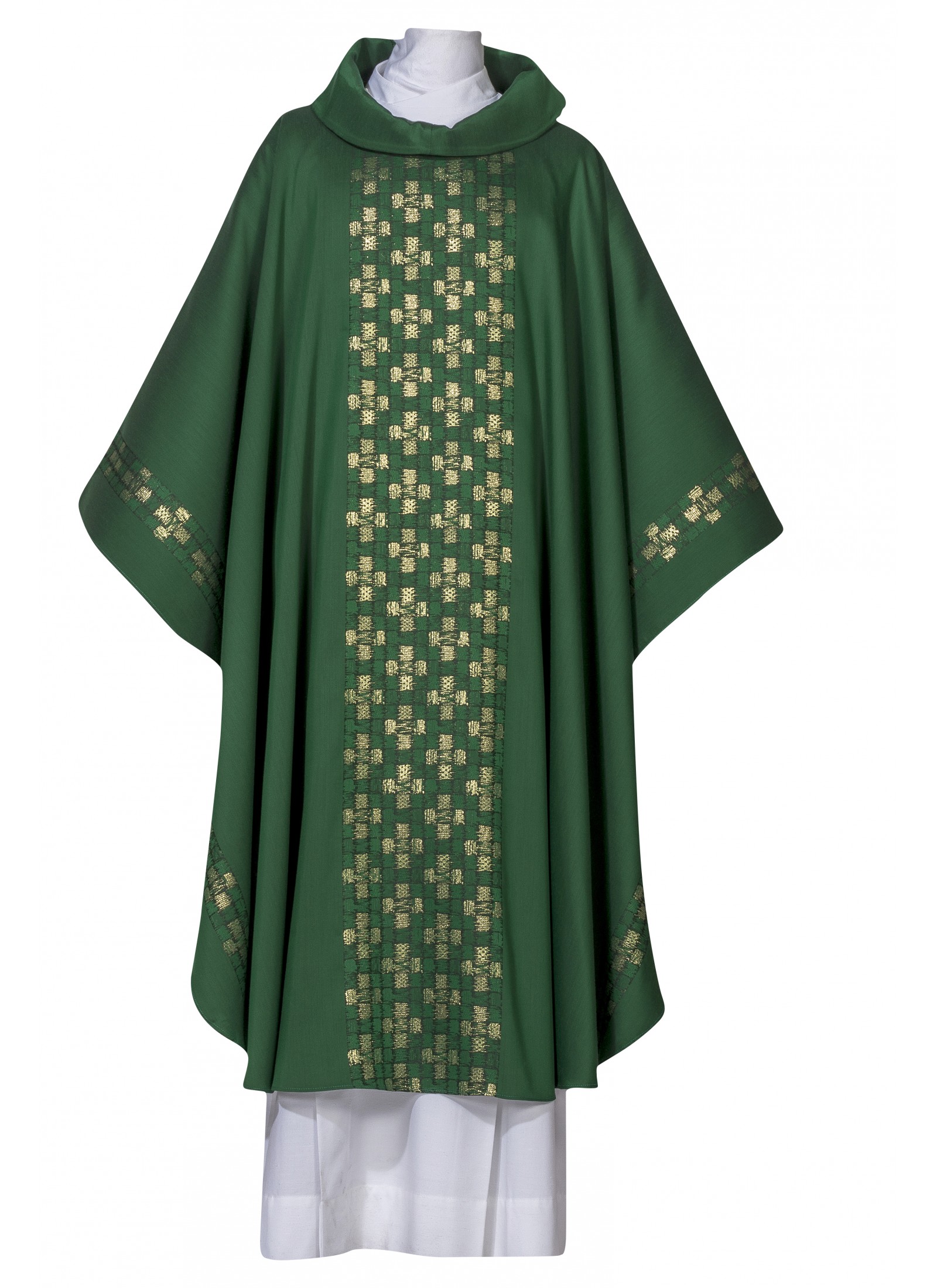 Kasel aus 80% Polyester, 19% Wolle und 1% Lurex.