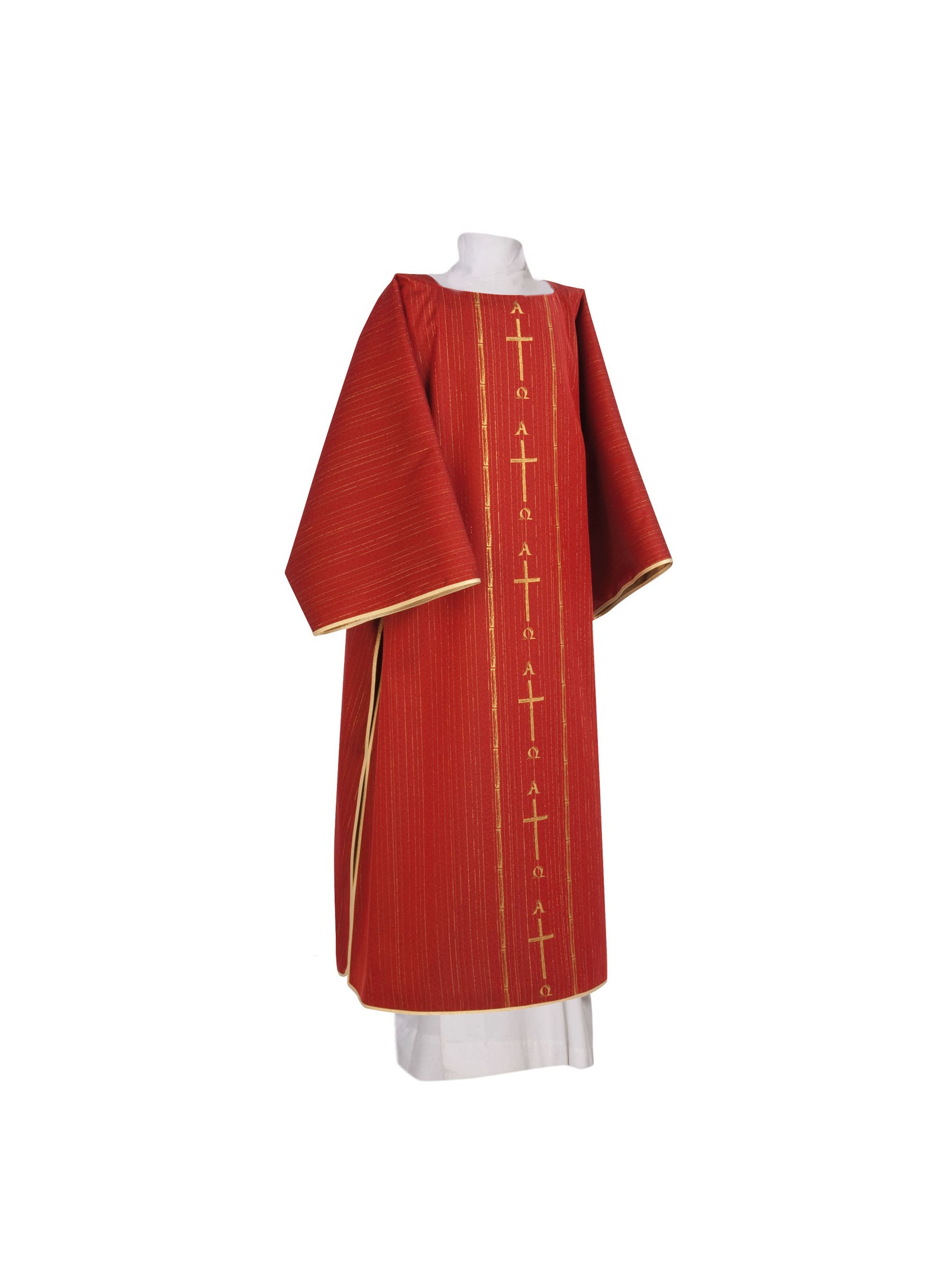 Dalmatik aus 72% Polyester, 22% Acetate und 6% Goldmetallfaden.