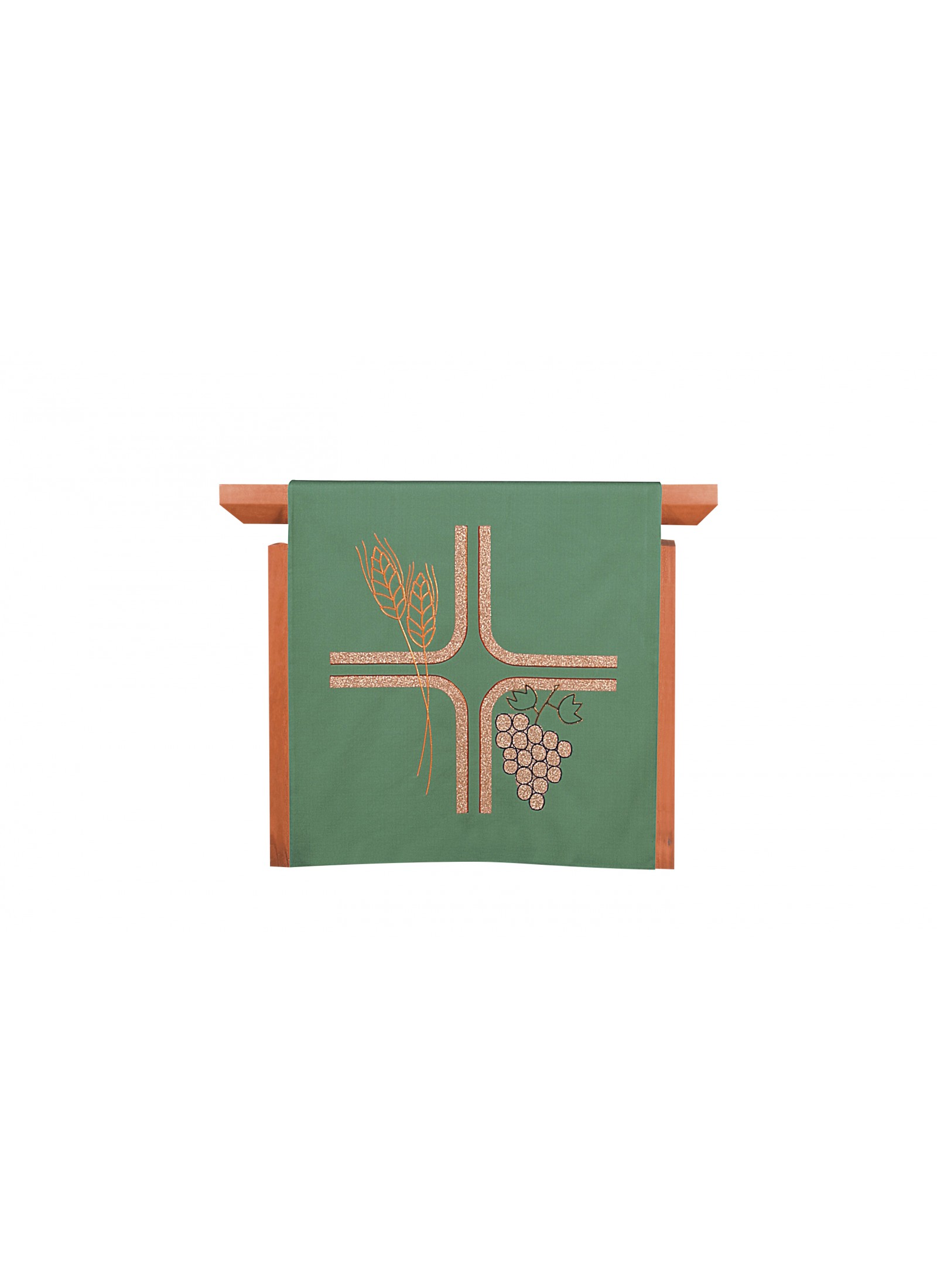 Mit gesticktem Kreuz mit Ähre und Trauben.
