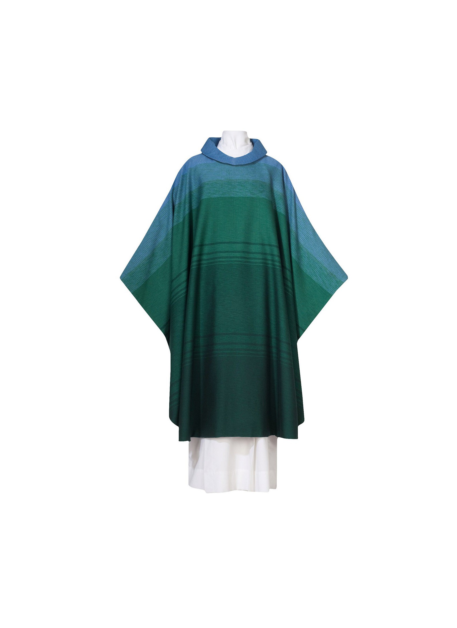 These vestments are handwoven. (60% wool, 35% polyester, 5% silk)