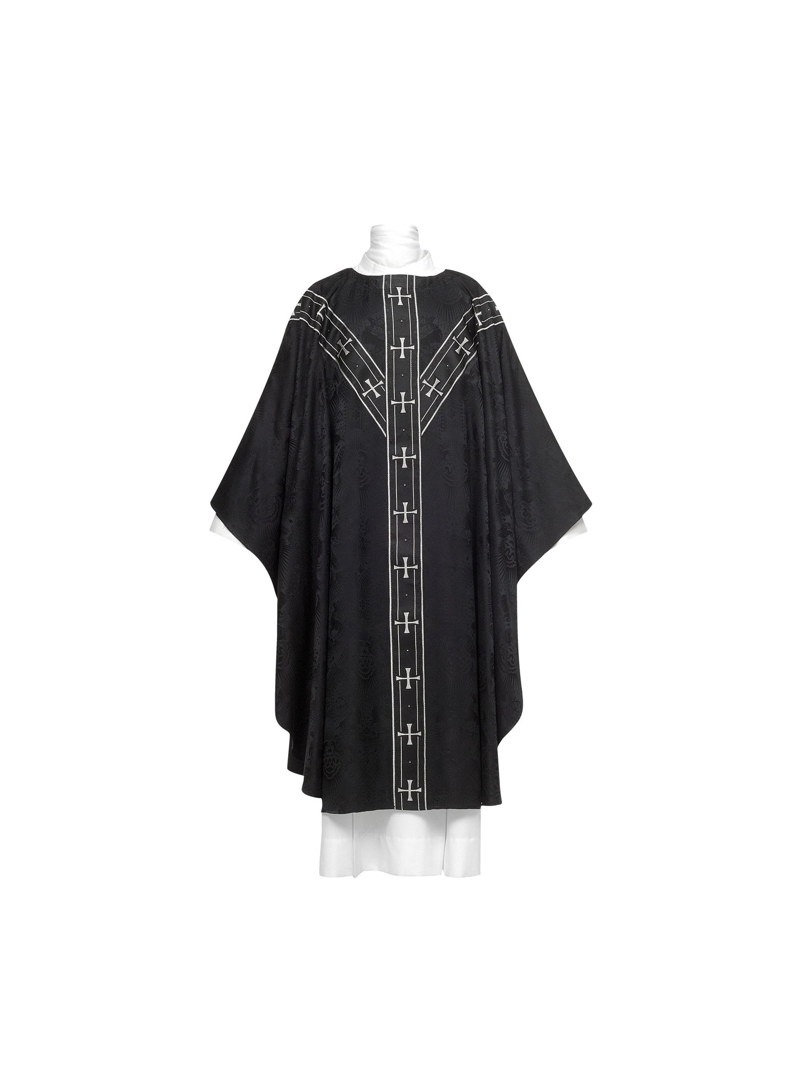 The chasubles have an ample gothic cut with a 61 inch width and a 53 inch length and include an inner stole