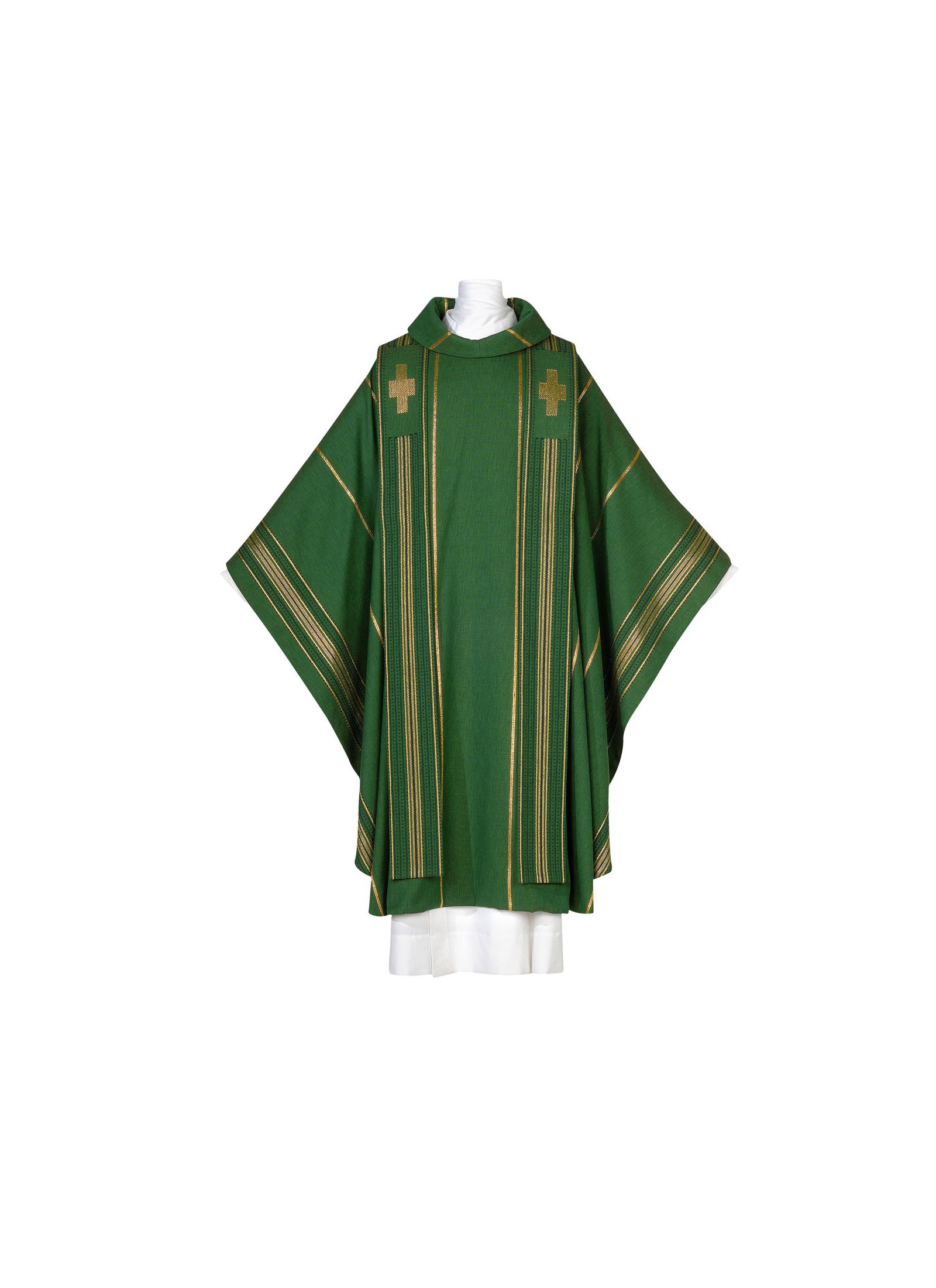 The chasubles have an ample gothic cut with a 61 inch width and a 53 inch length and include an inner stole