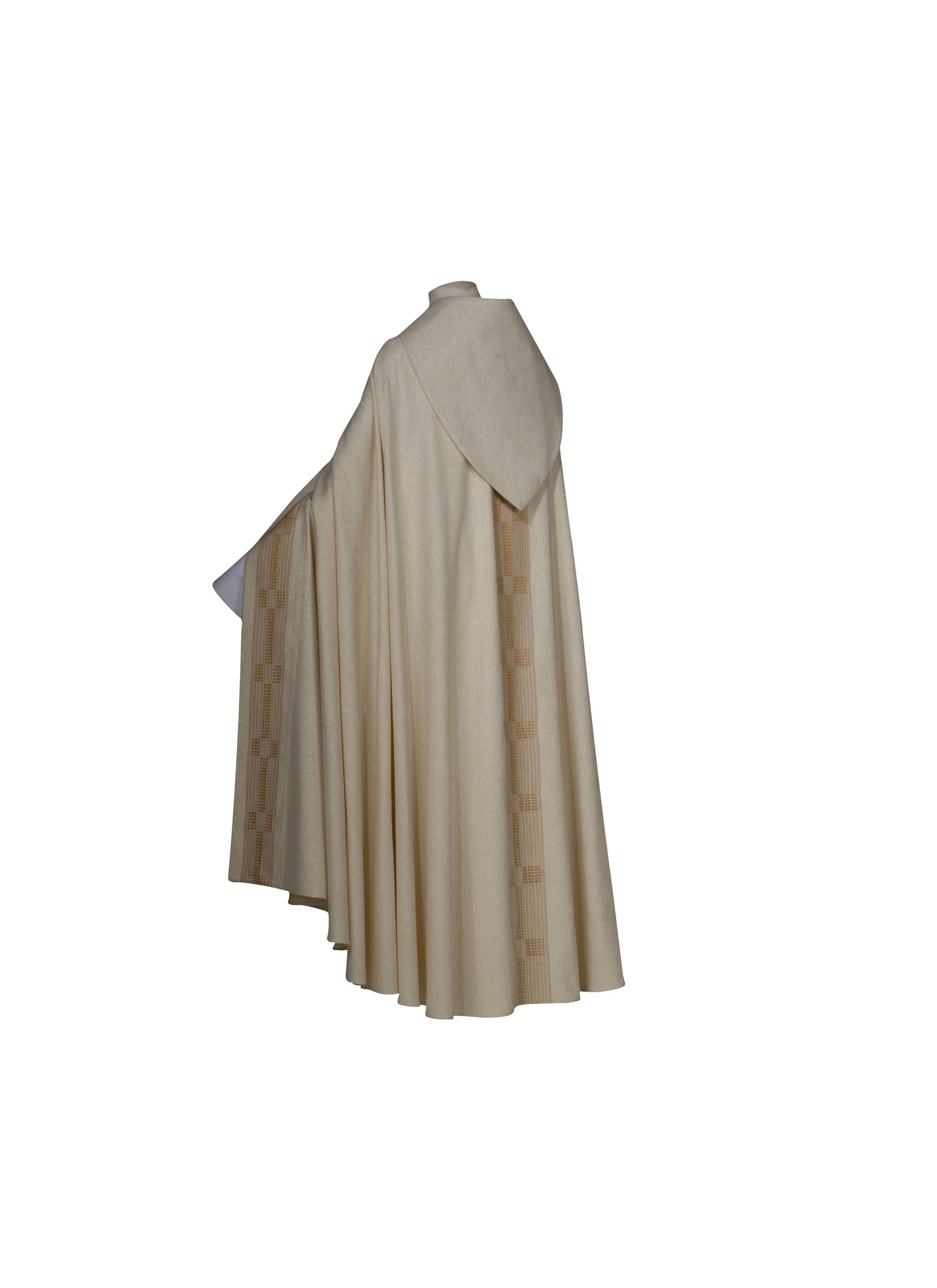 These vestments are woven. (70% wool, 25% polyester, 5% silk)