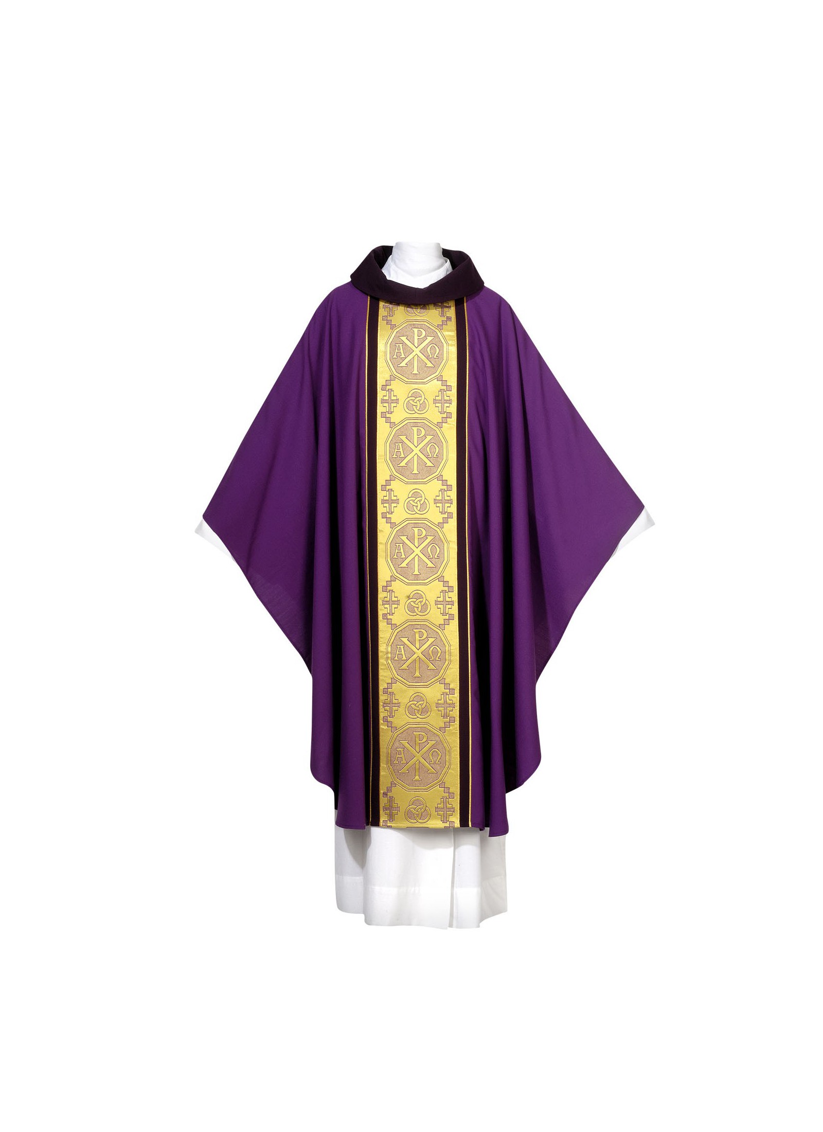 The chasubles have an ample gothic cut with a 61 inch width and a 53 inch length and include an inner stole.