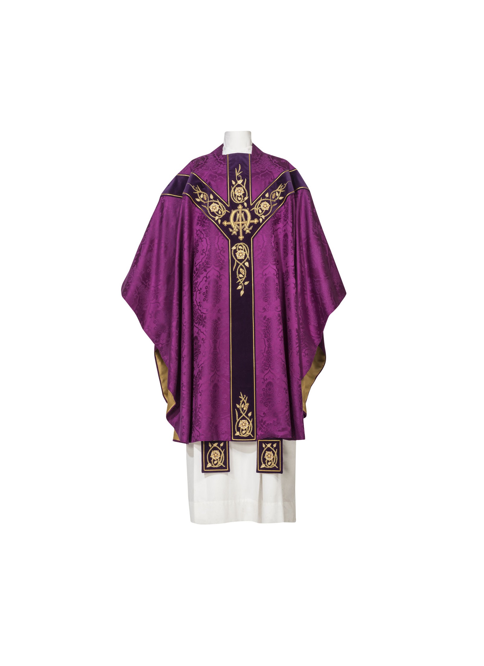 The chasubles are lined and have an ample gothic cut with a 61 inch width and a 49 inch length, these chasubles are lined and include an inner stole.