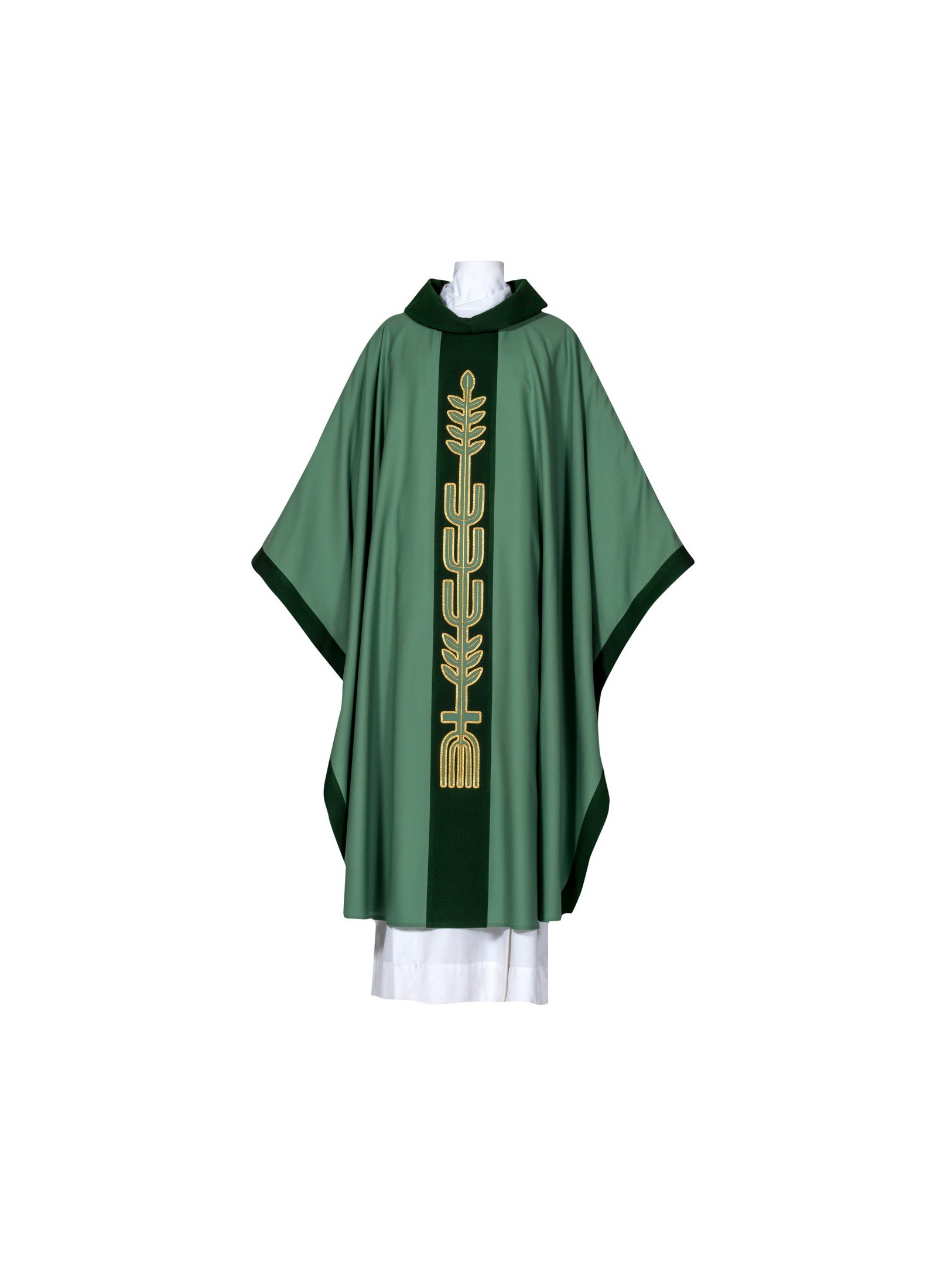 Kazuifel: breedte 155 cm, lengte 135 cm; met kazuifelstola. Gotische snit.